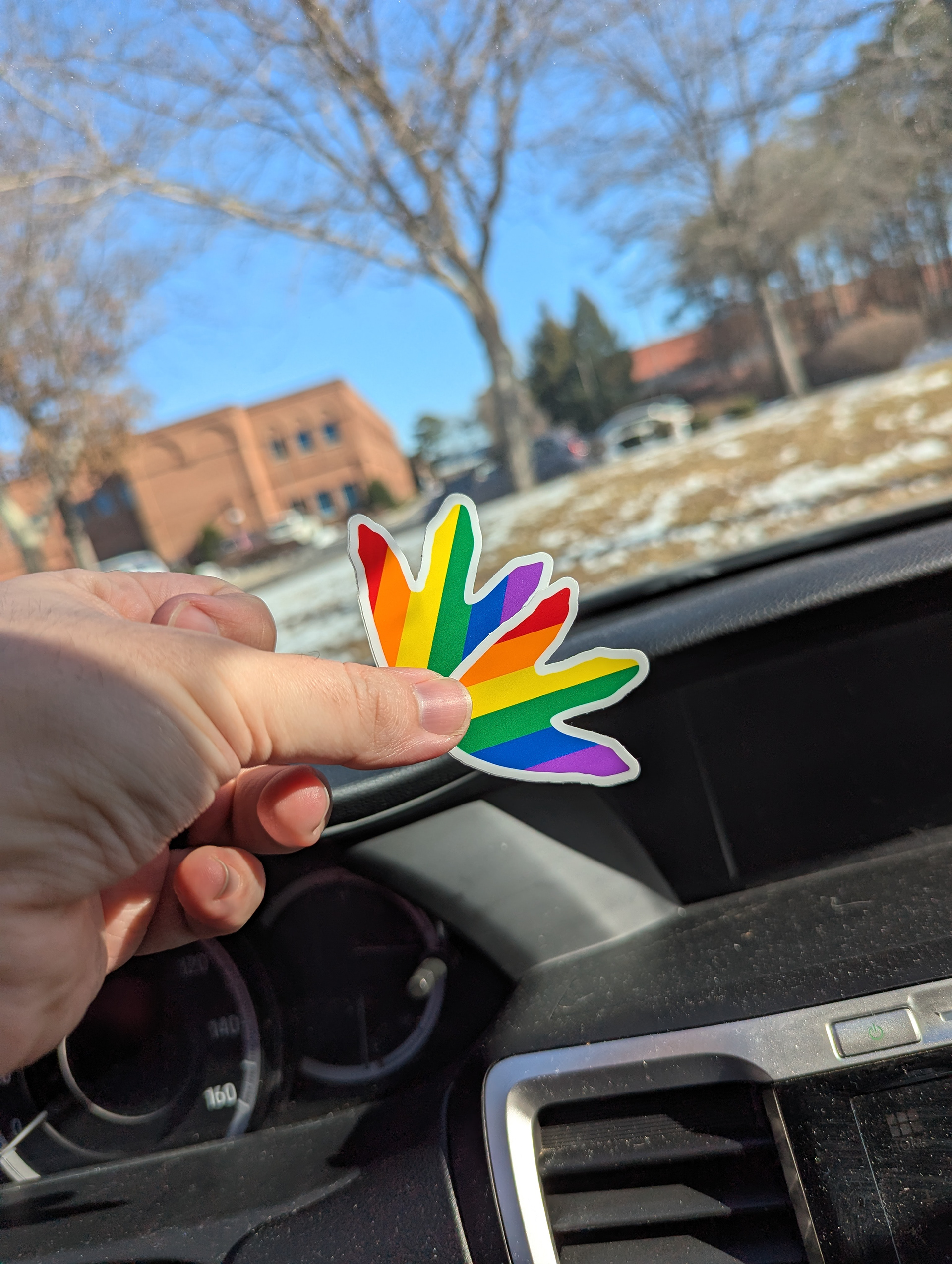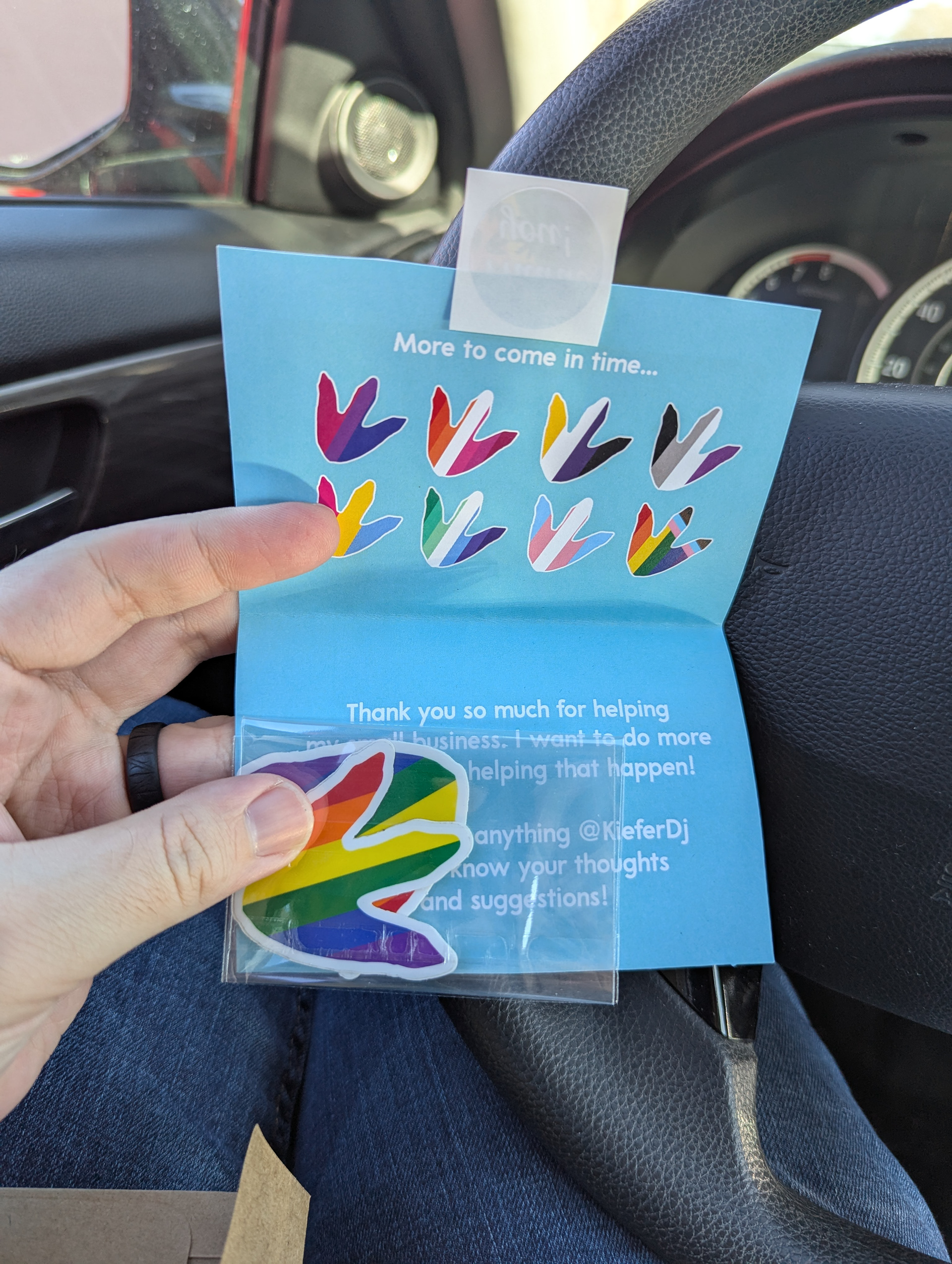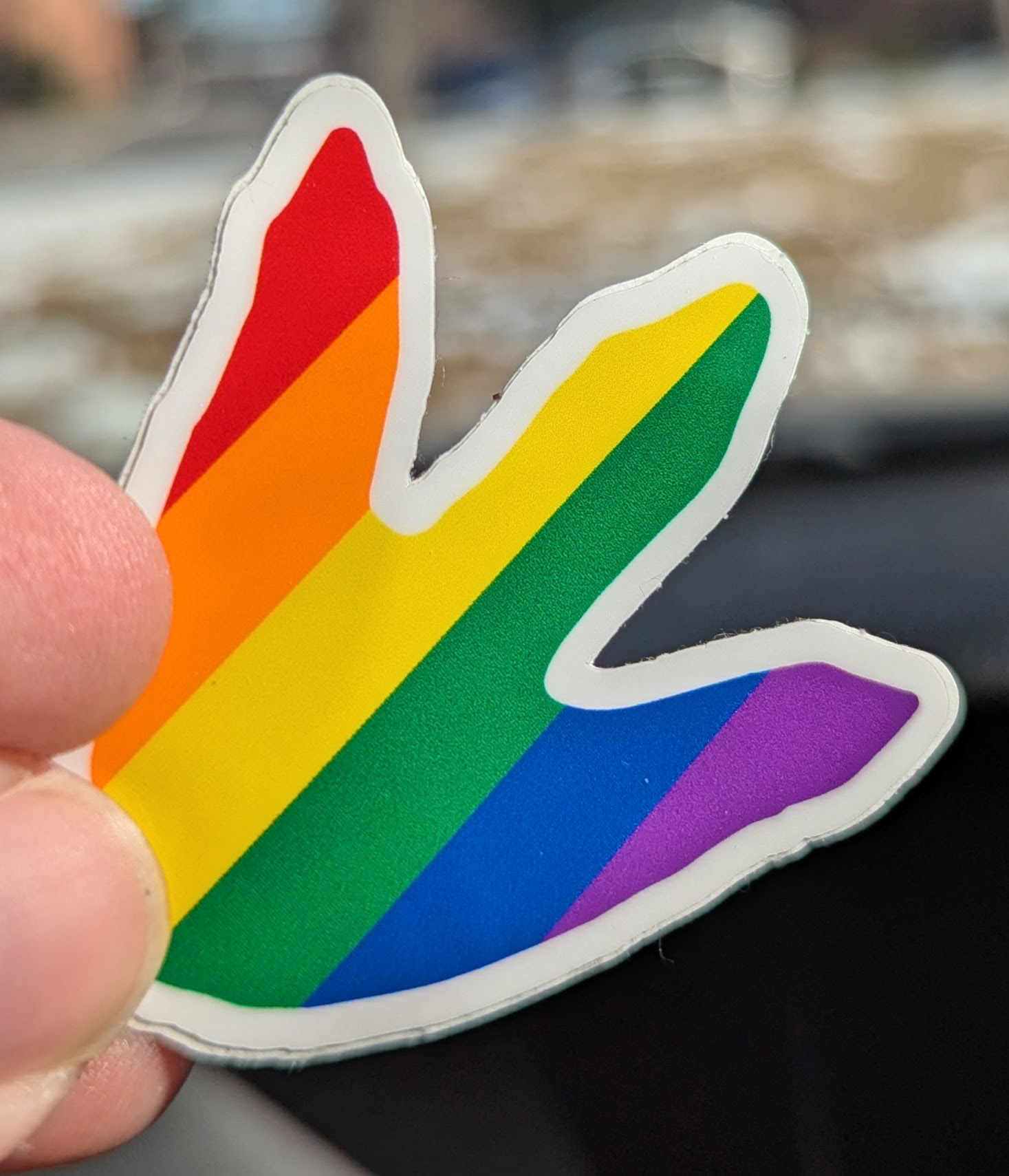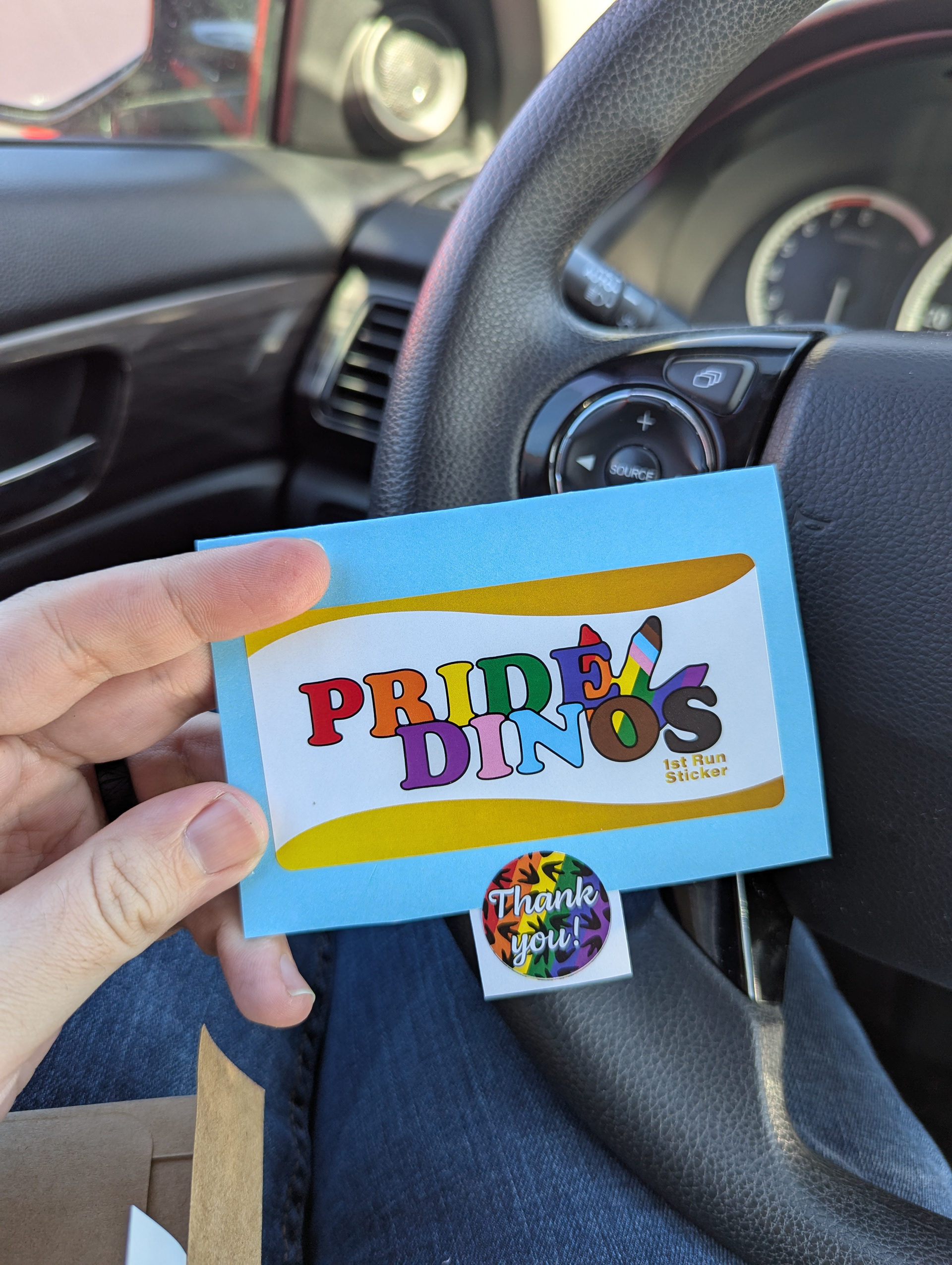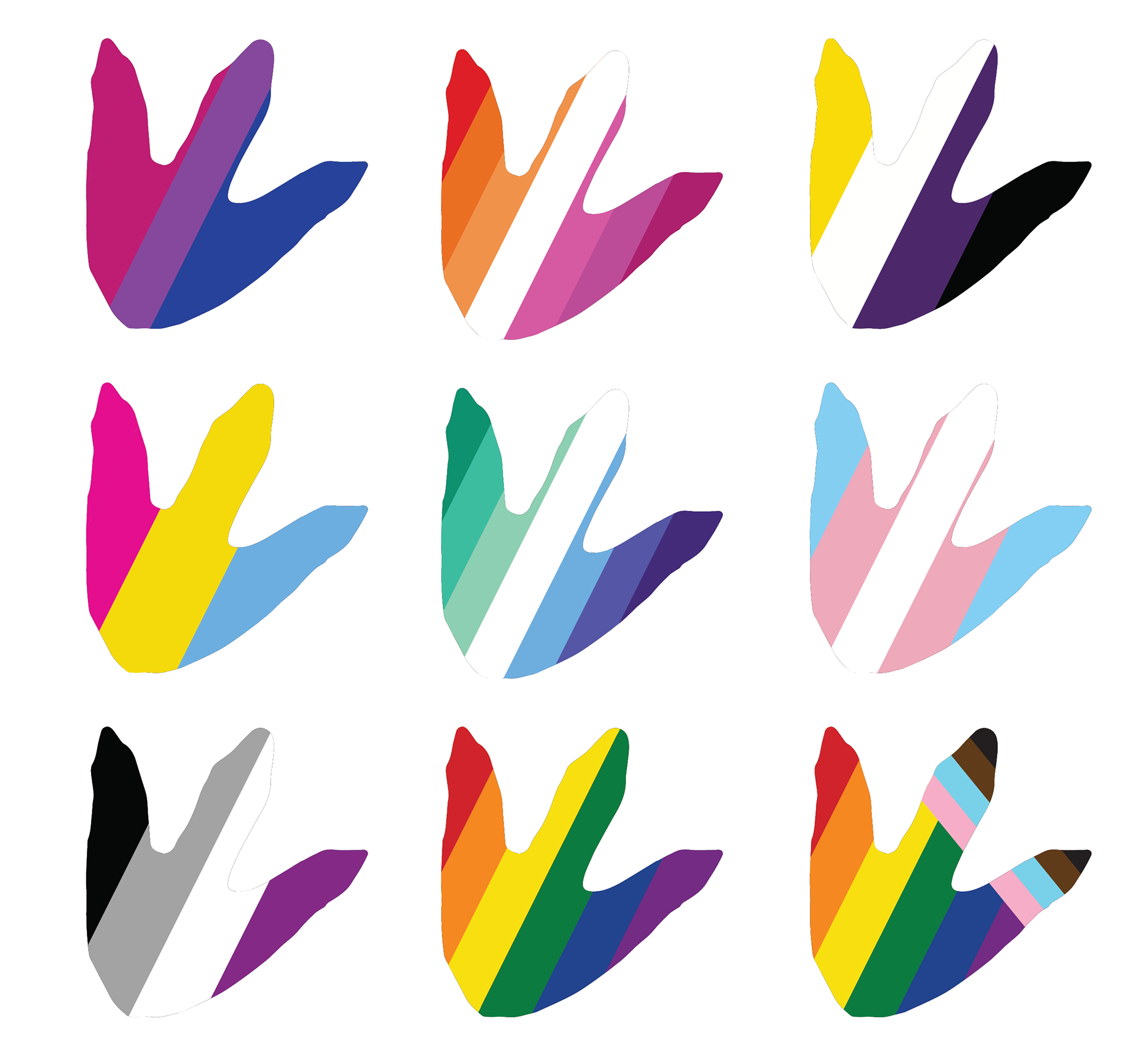 Created and printed my own stickers. In full support of the LGBTQIA+ Community which I am apart of. I was happy to make this for the community. Inspired by my love for being yourself and the pride flags in the shape of a dinosaur footprint.